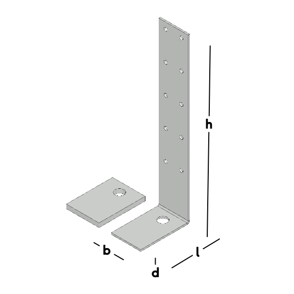 Stalen strip voorzien van een haaks gezet uiteinde. De hoek is extra versterkt met zijrillen. Geschikt om de trekkrachten van houtskelet bouwdelen over te brengen naar de hoofdconstructie. Het anker wordt gemonteerd in combinatie met de meegeleverde volgplaat waardoor extra trekkrachten kunnen worden opgenomen.