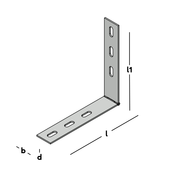 Scharnierbare montagehoek voor het koppelen van betonnen elementen in niet-haakse onderlinge positie.