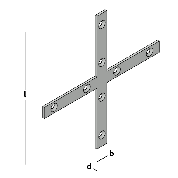 Vlak kruisijzer met schroefgaten. Geschikt om een houten kruisverbinding te versterken.