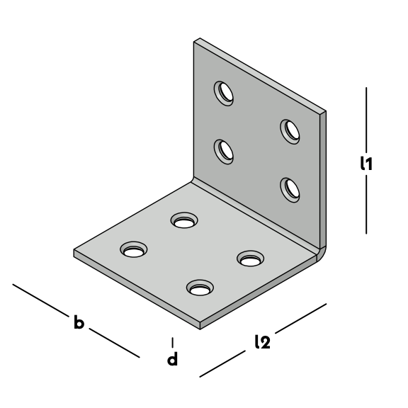 Montagehoek met schroefgaten, o.a. voor het versterken van lichte houten hoekconstructies.