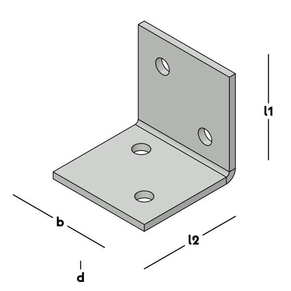 Montagehoek met schroefgaten, o.a. voor het versterken van lichte houten hoekconstructies.