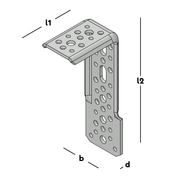 Zwaar hoekanker, extra versterkt met zijrillen. Uitgevoerd met een veelzijdig (slob)gatenpatroon. Uitermate geschikt voor de verankering van zware kozijnen.