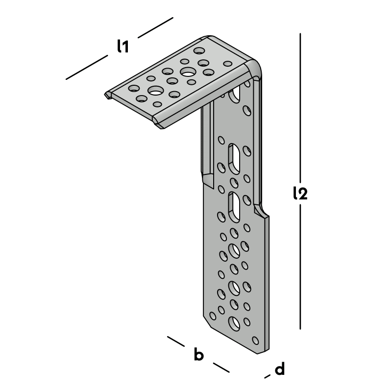 Zwaar hoekanker, extra versterkt met zijrillen. Uitgevoerd met een veelzijdig (slob)gatenpatroon. Uitermate geschikt voor de verankering van zware kozijnen.