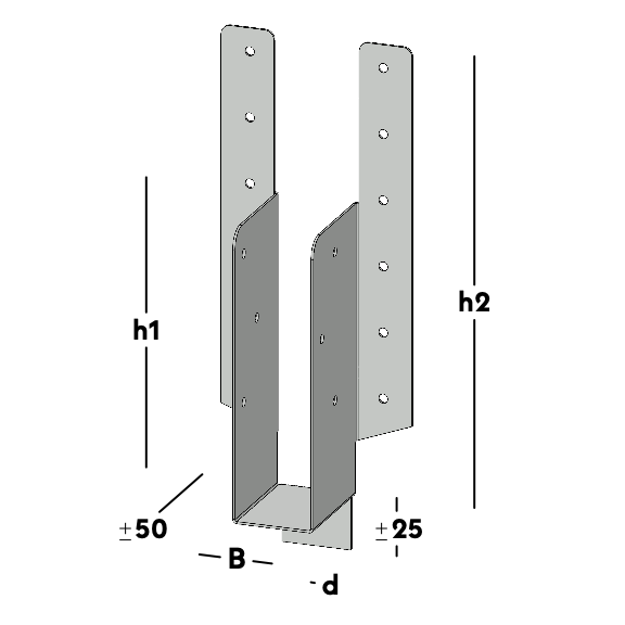 Balkdrager voorzien van zijflenzen met lange strippen om dwarsbalken te verbinden aan een hoofdbalk of houten muurregel. De strippen worden om de bovenzijde van de hoofdbalk of muurregel gevouwen voor extra draagkracht.