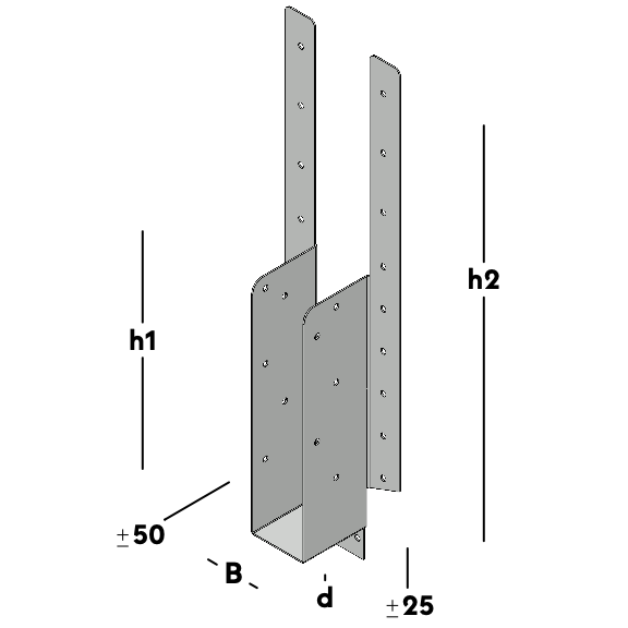 Balkdrager voorzien van zijflenzen met lange strippen om dwarsbalken te verbinden aan een hoofdbalk of houten muurregel. De strippen worden om de bovenzijde van de hoofdbalk of muurregel gevouwen voor extra draagkracht.