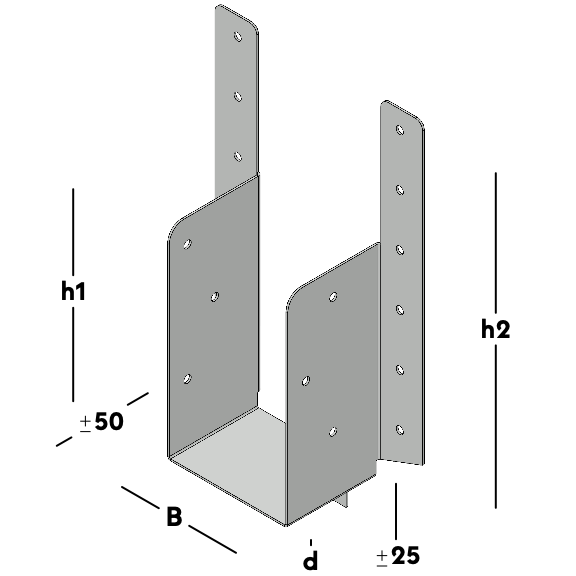 Balkdrager voorzien van zijflenzen met lange strippen om dwarsbalken te verbinden aan een hoofdbalk of houten muurregel. De strippen worden om de bovenzijde van de hoofdbalk of muurregel gevouwen voor extra draagkracht.