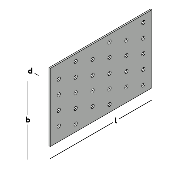 Montageplaat met bevestigingsgaten om houten delen aan elkaar te koppelen.