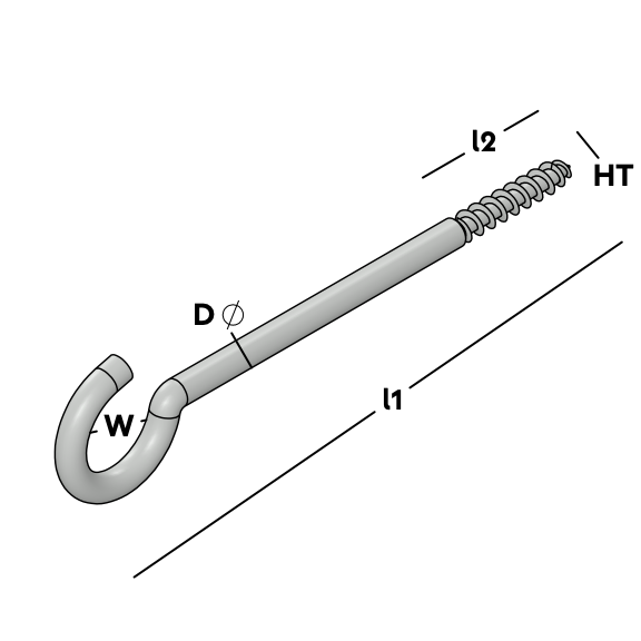 Extra zwaar uitgevoerde schroefhaak voorzien van houtdraad voor het maken van krachtige bevestigingspunten aan de wand en plafond. Verkrijgbaar in diverse maten in verzinkt of RVS.