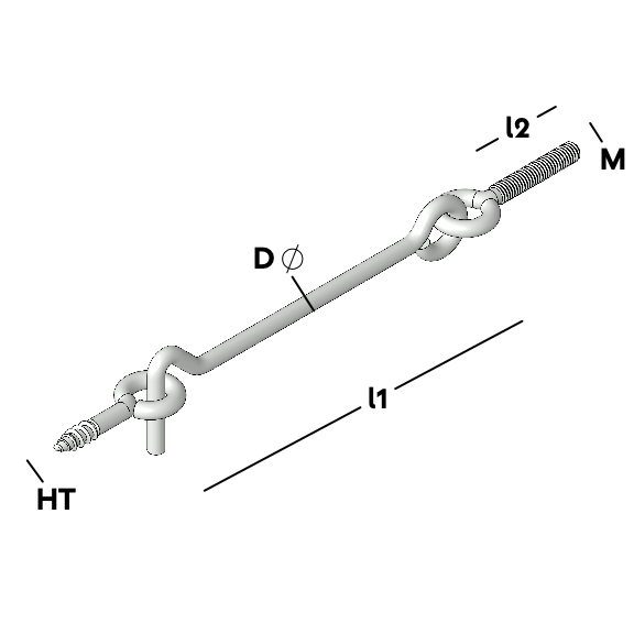 Windhaak complete set - uitvoering met metrische draad, inclusief oogschroef met houtdraad, ms plug, sluitring en moer. Voor vastzetten van deuren, ramen en andere losse draaiende delen. Verkrijgbaar in diverse maten in verzinkt of RVS.