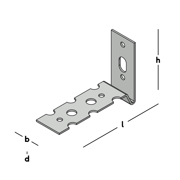 Lijm/montage anker (hoek met één been) voor het dilaterend koppelen van haaks op elkaar aansluitende gelijmde kalkzandsteen muren.
