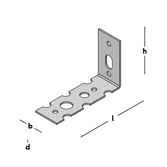 Lijm/montage anker (hoek met één been) voor het koppelen van haaks op elkaar aansluitende gelijmde kalkzandsteen muren. Dit wandanker wordt ook toegepast bij aansluitingen van vooraf gestelde houten binnen(deur)kozijnen.