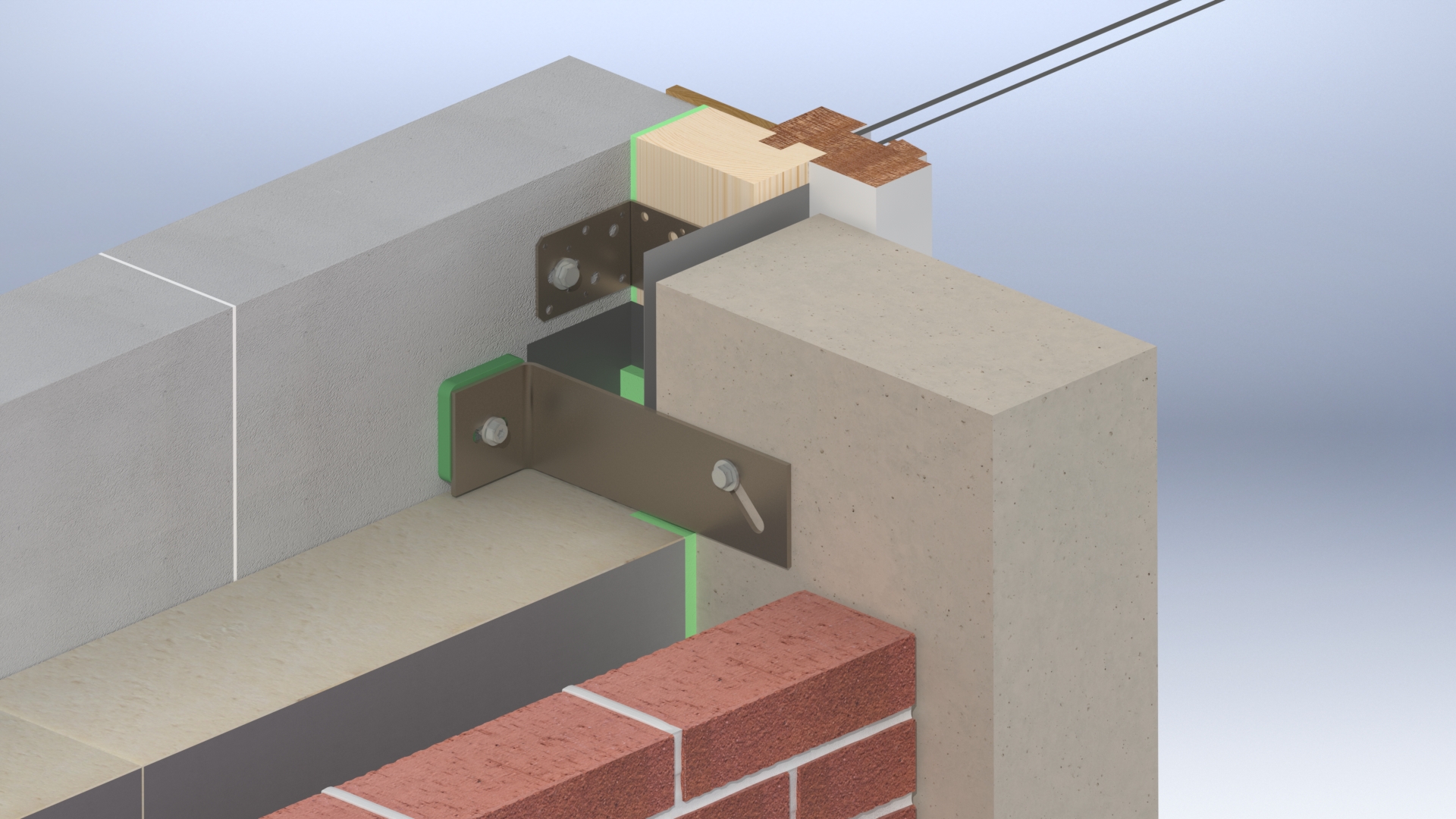 Hoekanker voor het monteren van een betonnen kozijnkader aan een binnenmuur van kalkzandsteen, beton of baksteen.