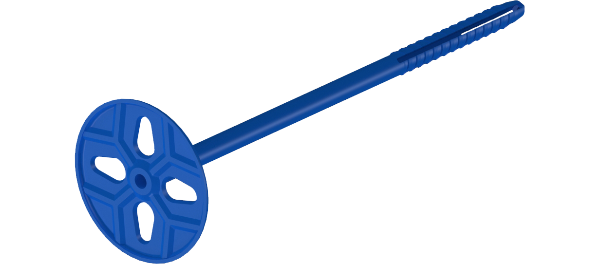 De blauwe isolatieplug is voor montage van harde en zachte spouwisolatie in combinatie met UNI-indraaispouwankers Ø 4 mm in een binnenmuur van geperforeerde steen.