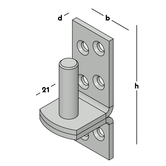 Pen Ø 13mm voorzien van een achterplaat met schroefgaten. Voor toepassing in combinatie met een duimheng.