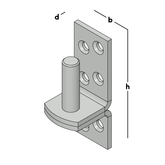 Pen Ø 16mm voorzien van een achterplaat met schroefgaten. Voor toepassing in combinatie met een duimheng.