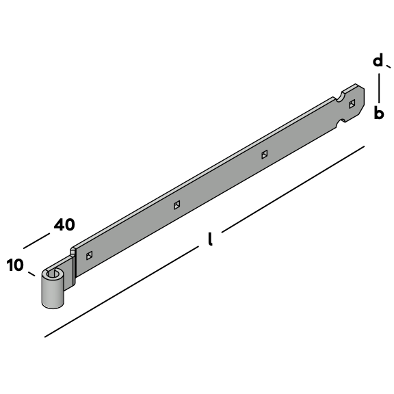 Heng voor het scharnierend bevestigen van poorten en deuren. Uitgevoerd met vierkante (slotbout)gaten en een verzet voor vlakwerk. Het verzet van de heng is gelijk aan de (opliggende) dikte van de duim zodat de deur vlak ten opzichte van de stijl kan worden afgehangen. Voor toepassing in combinatie met een duim Ø 16mm.
