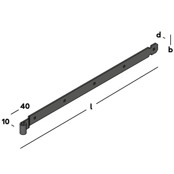 Heng voor het scharnierend bevestigen van poorten en deuren. Uitgevoerd met vierkante (slotbout)gaten en een verzet voor vlakwerk. Het verzet van de heng is gelijk aan de (opliggende) dikte van de duim zodat de deur vlak ten opzichte van de stijl kan worden afgehangen. Voor toepassing in combinatie met een duim Ø 16mm.