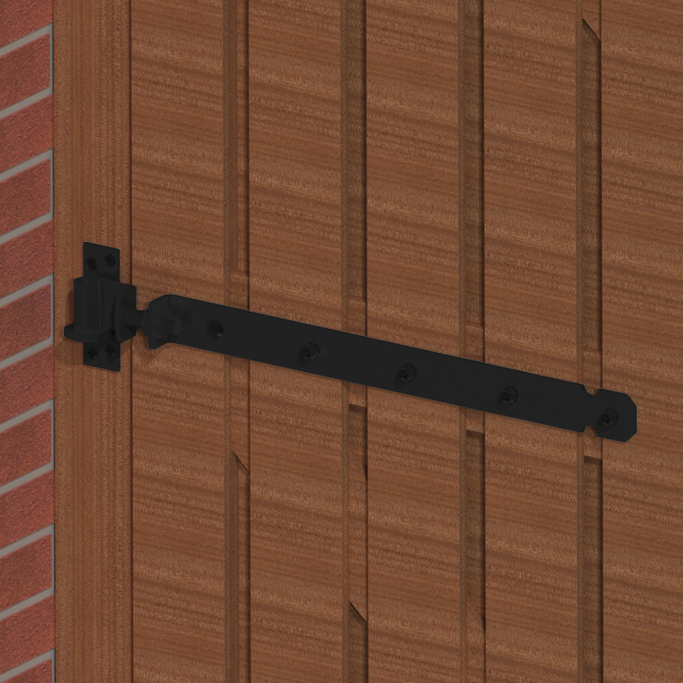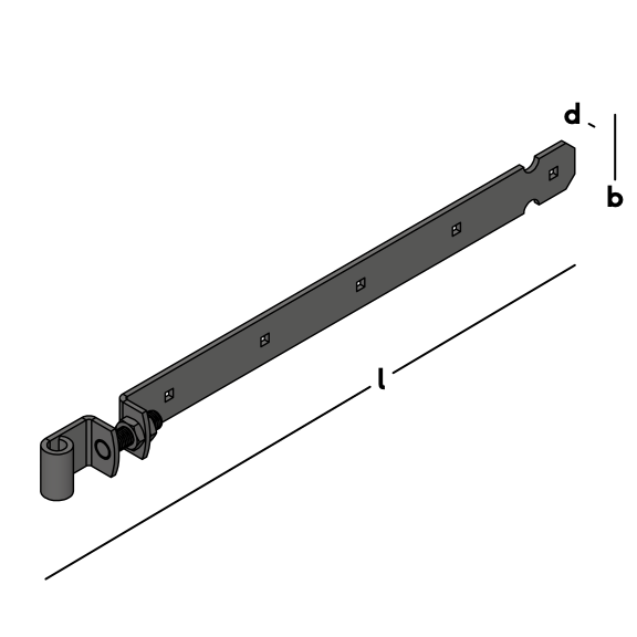 Heng voor het scharnierend bevestigen van poorten en deuren. Uitgevoerd met een kort draadeind om in de lengterichting te kunnen (na)stellen. Voor toepassing in combinatie met een duim Ø 16mm.