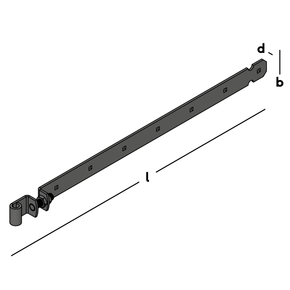 Heng voor het scharnierend bevestigen van poorten en deuren. Uitgevoerd met een kort draadeind om in de lengterichting te kunnen (na)stellen. Voor toepassing in combinatie met een duim Ø 16mm.